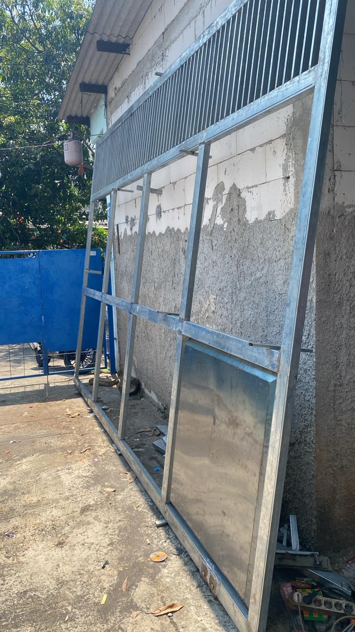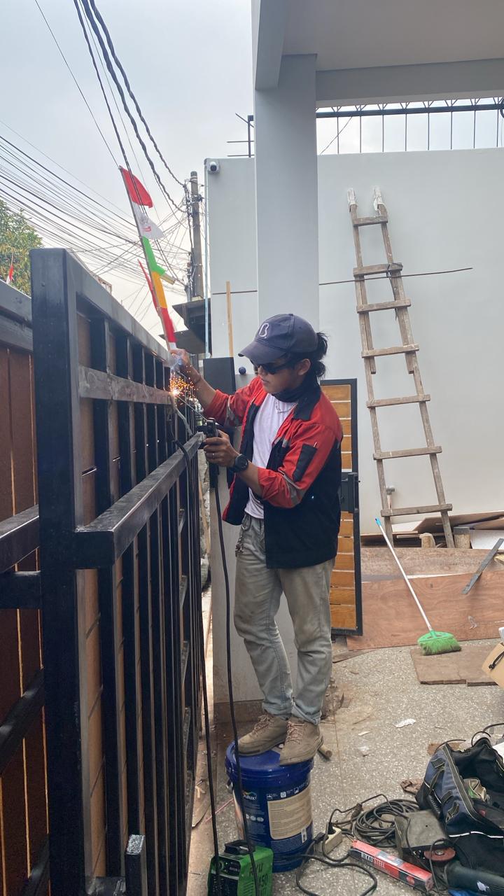Proses pembuatan produk custom seperti pintu, pagar, dan partisi dengan teknik presisi dan bahan berkualitas di bengkel kami.